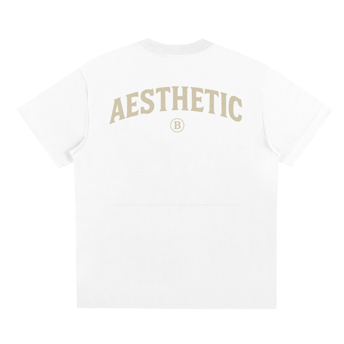 Crafted for those who appreciate clean design and bold identity, this minimalist tee features the iconic "AESTHETIC" arch and signature BUKY "B" logo — no distractions, just refined streetwear simplicity.